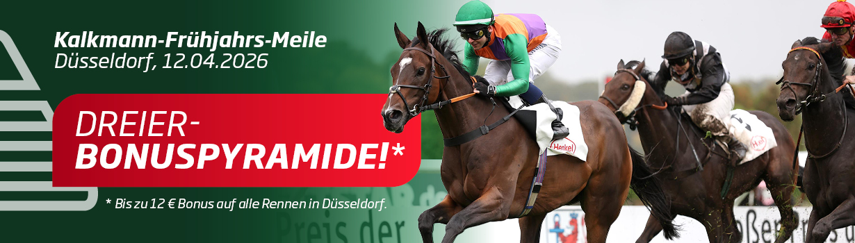 Am Sonntag, 12. April 2026 erwartet Sie zur Frühjahrs-Meile (Gruppe III) die „Bonuspyramide“-Sonderaktion für die Dreier-Wette in Düsseldorf.