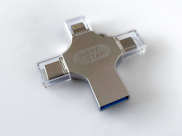 Unser neuer 64 GB-USB Stick von Wettstar mit USB A und USB C Anschluss ist mit IOS/ANDROID und WINDOWS kompatibel. Sozusagen ein kleiner Allrounder zum Thema Datensicherung und Datenverarbeitung. Externe Speichererweiterung, um viel Platz auf Ihrem IOS/ Android-Gerät zu schaffen.