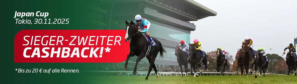 Am Sonntag, 30. November 2025 erwartet Sie zum diesjährigen Japan Cup die Aktion Siegwette - Zweiter bis zu 20 € Cashback auf alle Rennen in Tokio.