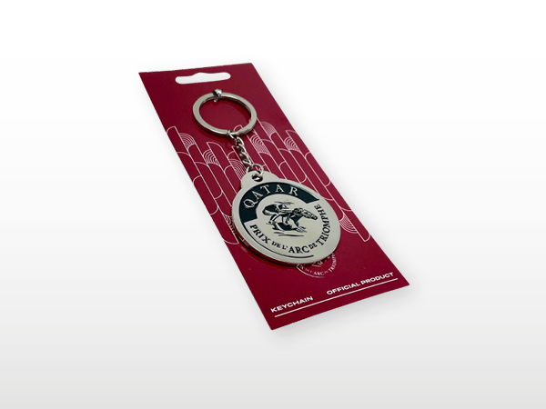 Sichere dir deinen Alltagsbegleiter! Schlüsselanhänger aus Metall mit Logo des „Qatar Prix de l'Arc de Triomphe“.